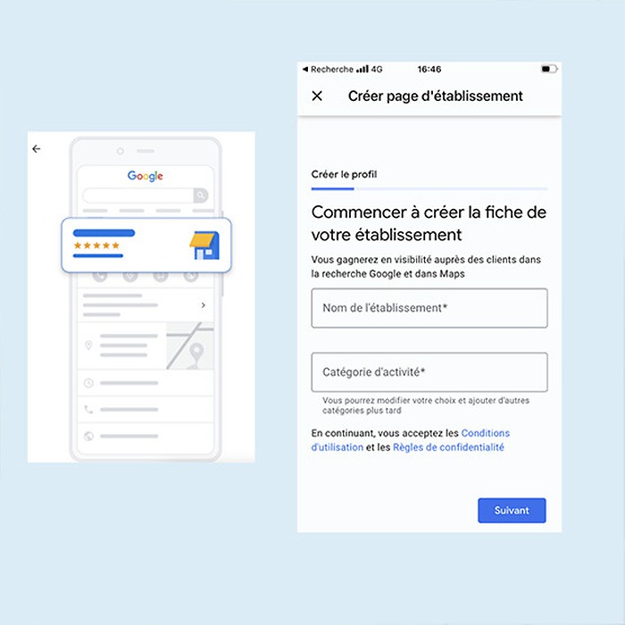 Si votre établissement n’existe pas, il va vous falloir le créer. Pour ce faire, il vous faudra suivre les différentes étapes indiquées par Google. Cela est assez rapide et très simple. Plus la fiche sera complète et plus vous serez visible et n’oubliez pas d’ajouter des photos ; cela plait beaucoup.