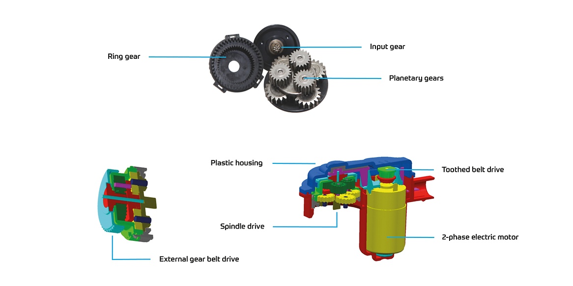 L'attuatore di quarta generazione è costituito da un gruppo di ingranaggi planetari a due stadi in un design più compatto.